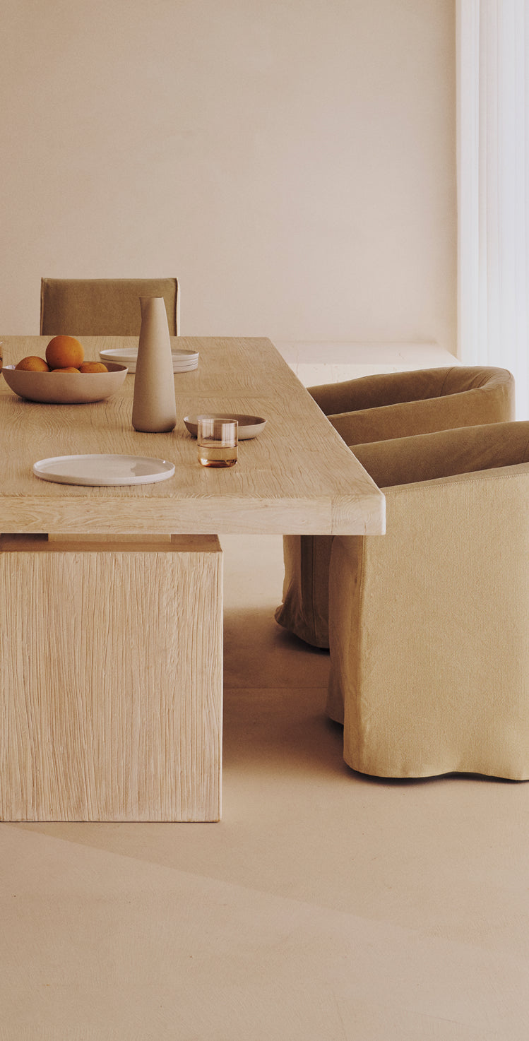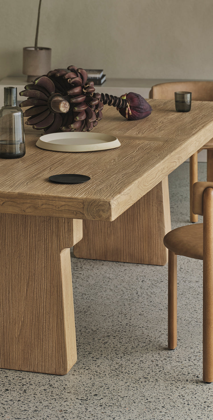 Celebrate the raw beauty of solid timber with bold architectural silhouettes where natural variations in grain, tone, and texture ensure every piece is unique.